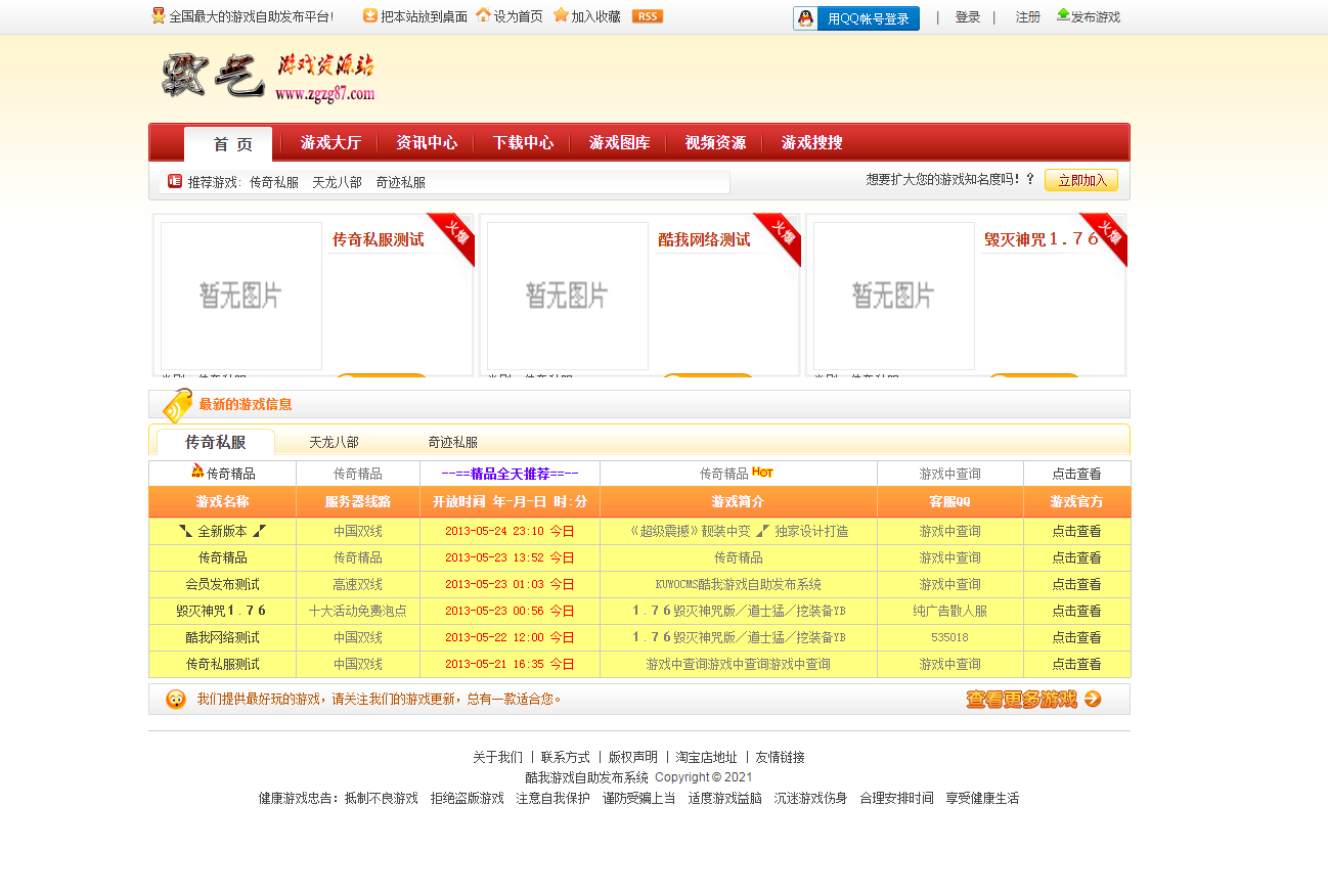 游戏私服发布站完整源码程序
