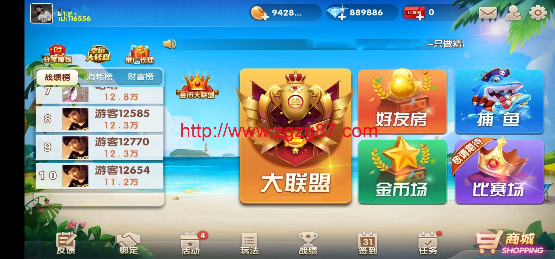 嗯,这个本来是没打算弄的,不过今天情人节,就给你们啦。修了很多地方。 然后花了点时间弄出来发现还真是挺帅气的,先说明,搭建测试发现有点小毛病的,但是不影响。 金币+房卡的集合,游戏挺多,而且合伙人制度很好,和比神兽的合伙人还要完美点, 其次就是大联盟做的很到位,和大亨互娱那些基本一样了,金币也有大联盟,但是游戏只有一个。 好了不多说了,东西怎么看怎么喜欢。游戏很多,牛牛,金花,斗地主,暗堡,鱼虾蟹,麻将,跑的快,红中,广东麻将都有,十三水,跑胡子也有,三公,通宝等。