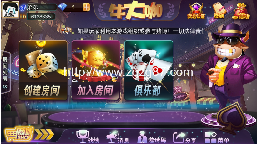 最新牛大咖俱乐部积分版组件,非源码,可达到运营级,界面美化过,跟老铁牛牛雷同,都差不多,最新最新9.0版本后台,完美控制,点控玩法,控制是后台开启点控 或者 胜率,注意 点控胜率不能同时开,否则控制不生效