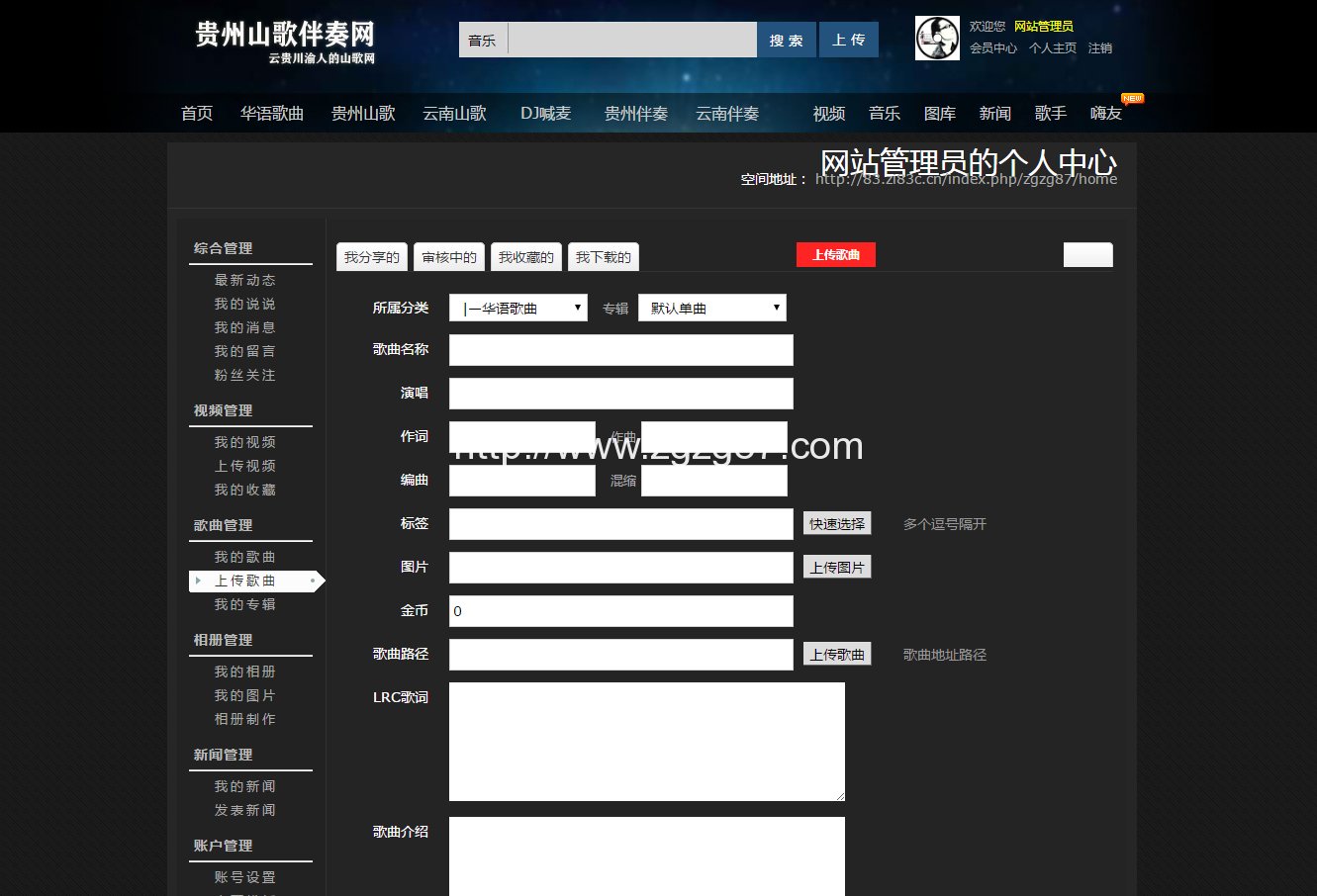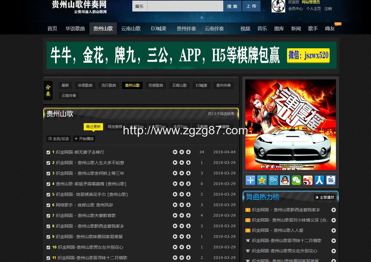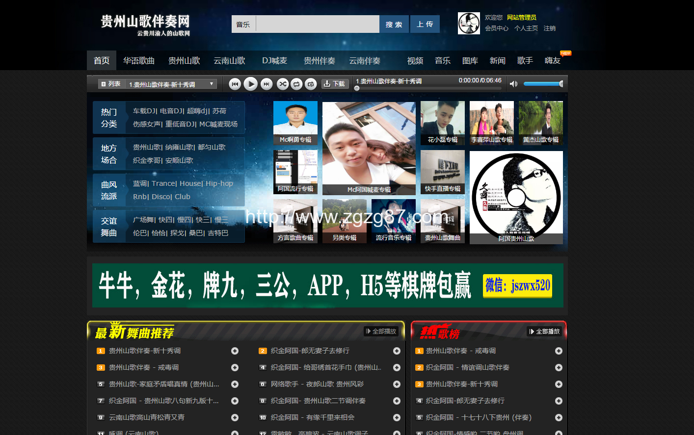 DJ网站,贵州山歌伴奏网源码程序模板全套打包的直接用