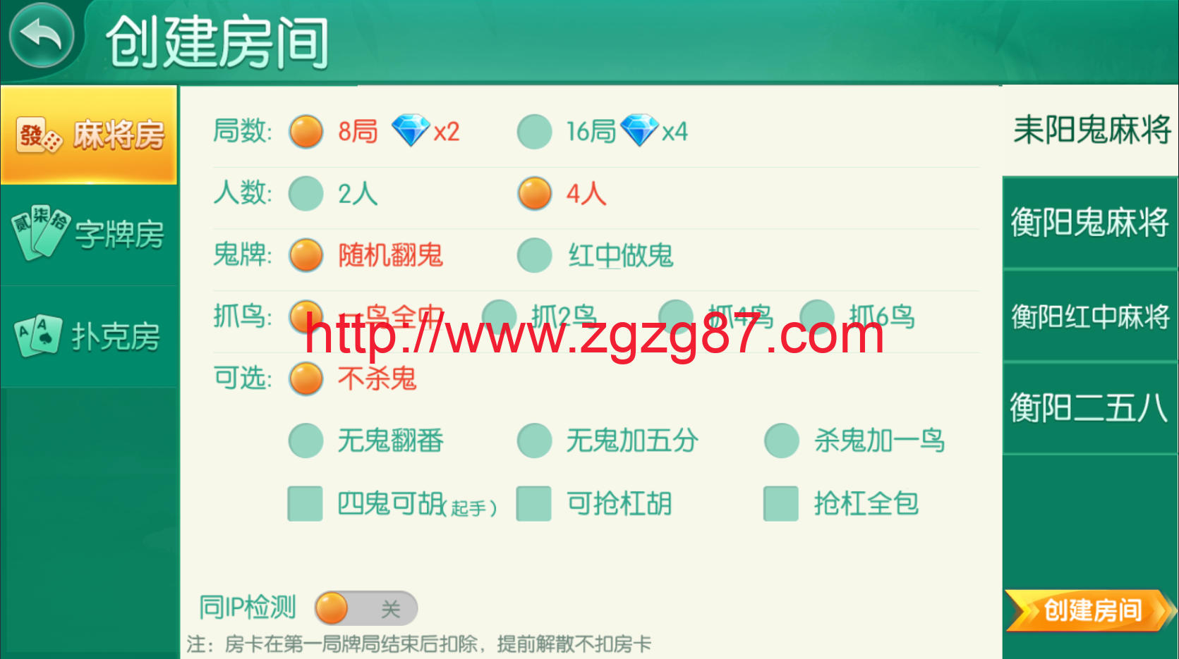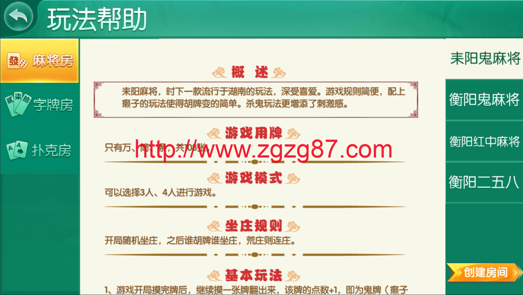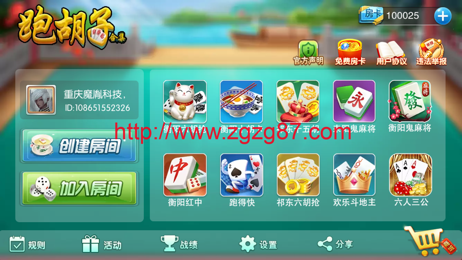 这款游戏不错,是网狐公司的,离雨给我的,本人亲测可用 内置游戏 麻将房 衡阳二五八 衡阳红中麻将 衡阳六胡抢 衡阳十胡卡 字牌房 耒阳鬼麻将 耒阳字牌 柳州麻将 祁东六胡抢 祁东十五胡 扑克房 斗地主 六人三公 湖南跑得快